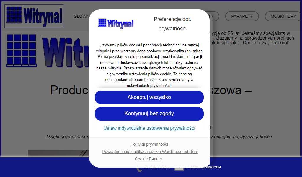 Profil działalności Witrynal: okna, drzwi i przeszklenia PVC/PCV oraz aluminium - Witrynal to firma działająca w obszarze rozwiązań okienno-drzwiowych, której profil obejmuje przygotowanie konstrukcji dopasowanych do projektu budynku dla domów jednorodzinnych, ...Z dniem 25.05.2018 r. w życie wchodzą nowe wytyczne w zakresie gromadzenia i przetwarzania danych osobowych. Reguluje to Rozporządzenia Parlamentu Europejskiegoi Rady 2016/679 z dnia 27 kwietnia 2016 r. w sprawie ochrony osób fizycznych w związku z przetwarzaniem danych osobowych i w sprawie swobodnego przepływu takich danych oraz uchylenia dyrektywy 95/46/WE (Ogólne Rozporządzenie o Ochronie Danych), zwane RODO.